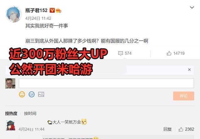 B站近300万粉丝UP主——瓶子君,“开团”米哈游