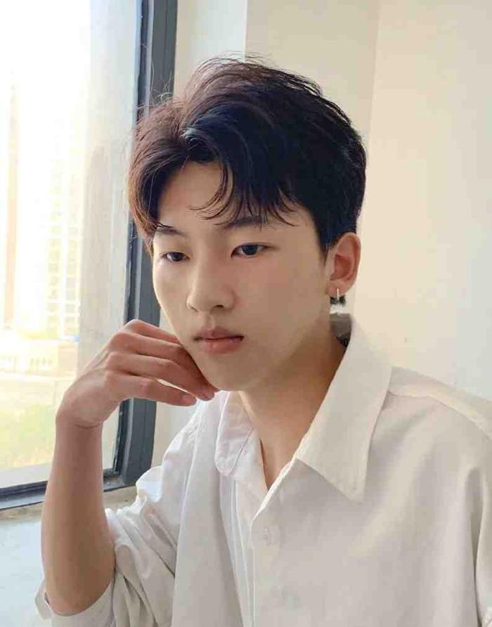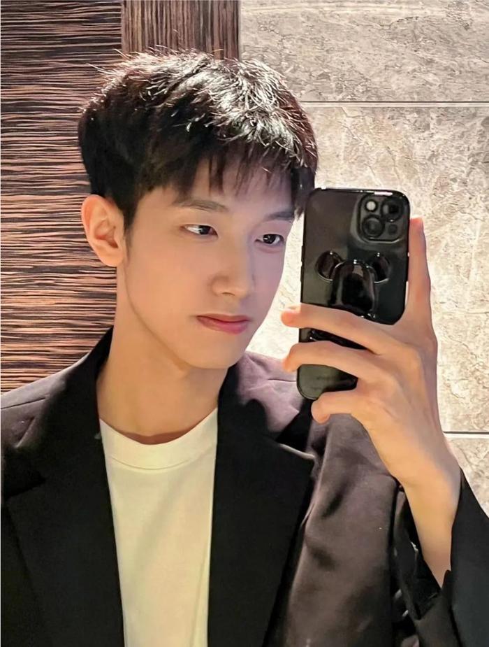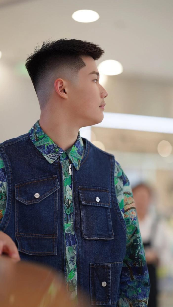 前边修剪成碎齐的刘海,还能很好的遮挡额头修饰五官,帅帅的风采,自拍起来更有型。