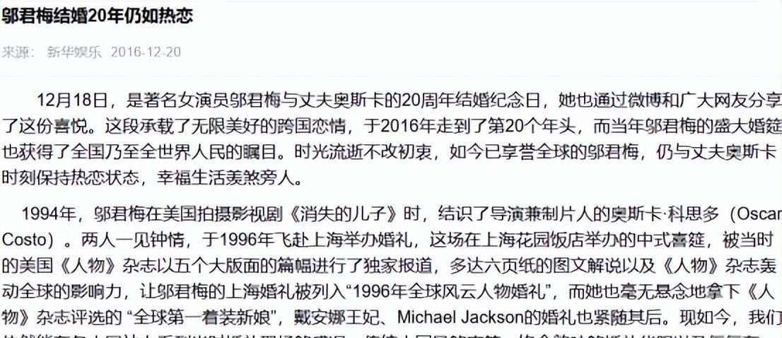 1994年28岁时, 邬君梅与比自己大12岁美国导演结婚, 两人婚礼备受关注, 这场跨文化婚姻也见证了爱情与包容,并随着时间流逝愈发甜蜜。