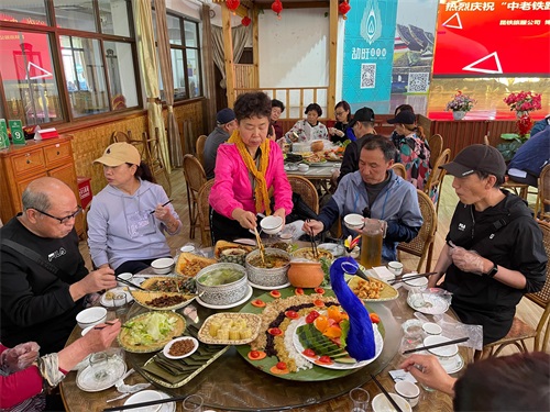 穿越无量山,驶进古树台地共存的万亩茶园-普洱,庄严宣告闻名天下最大的普洱茶集散地没有一寸铁轨的历史结束了。投桃报李,梅子湖畔的人民给列车送上了丰盛的午餐。