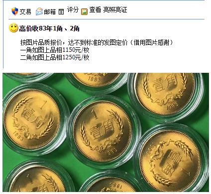 如下图卷拆原光品相的1983年1角,收购价格在1150元以上。