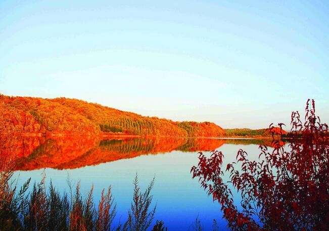 桃源湖畔桃花水,桃花园里可耕田。走进桃源湖畔,如进入世外桃源。沿湖堤坝北侧是山花繁衍的胜地,夏初之际,小桃红和各种不知名的野花争奇斗艳。湖畔东边则是山丁子的乐园,入秋时节,果实累累,紫红色的果实在风中摇曳,飘着诱人的果香。