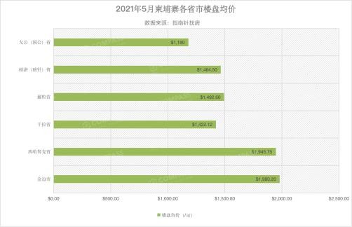根据指南针找房最新数据显示,2021年5月柬埔寨新房全国均价$1926/㎡,持续小幅度下跌,核心城市金边均价$1980/㎡。