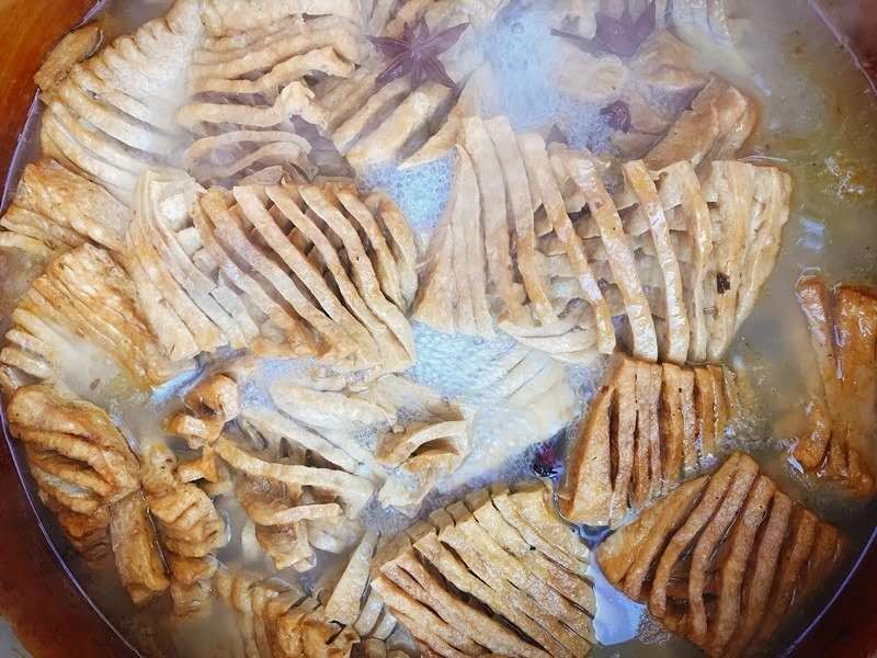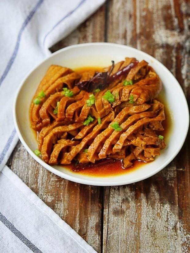 别小看了这切花刀法,它除了漂亮之外,能让豆干吸收更多的卤汁。