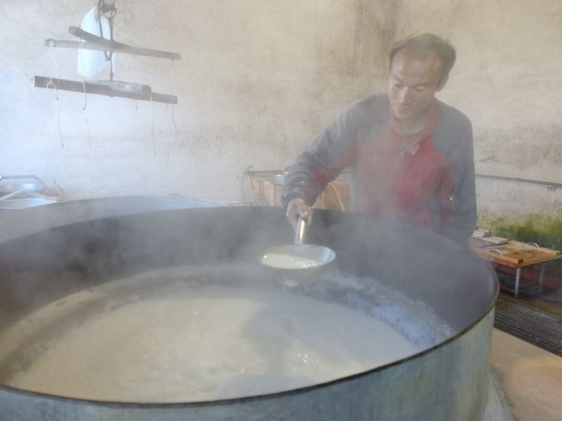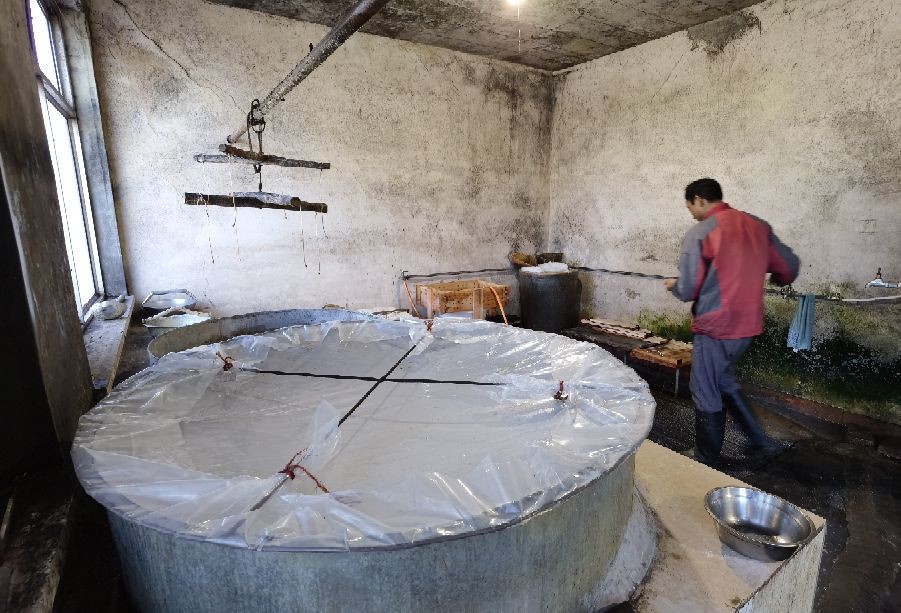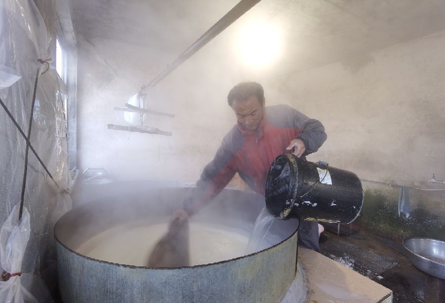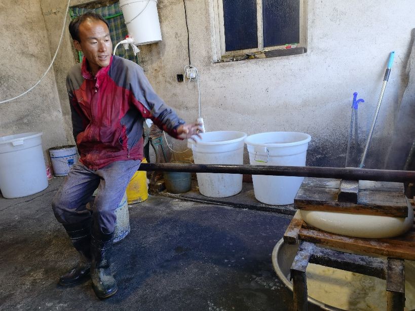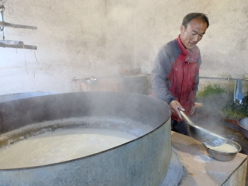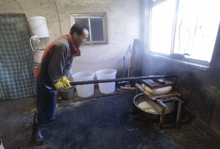 豆腐坊主人每天半夜1点钟起床开始工作,大概早晨8点钟左右完成每天3屉豆腐的制作,然后出门售卖。像这样纯手工制作的豆腐坊已经不多了!