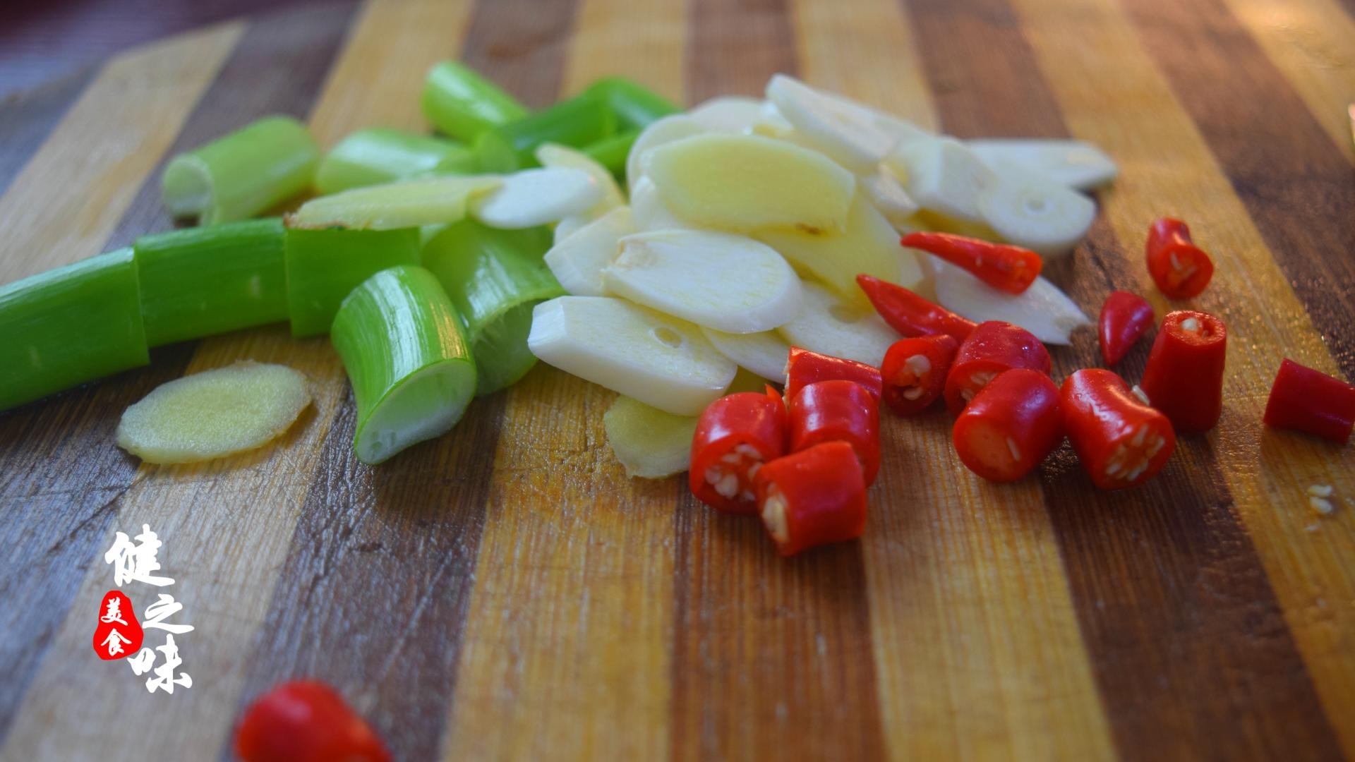 步骤二:将准备好的生姜切片,大蒜切片,小米椒切段,葱白切段,切好之后放一起备用。