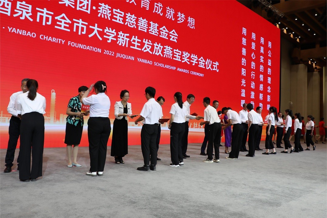 2022年8月31日,宁夏宝丰集团·燕宝慈善基金会2022年向酒泉市全市大学新生发放燕宝奖学金仪式在敦煌国际会展中心举行。