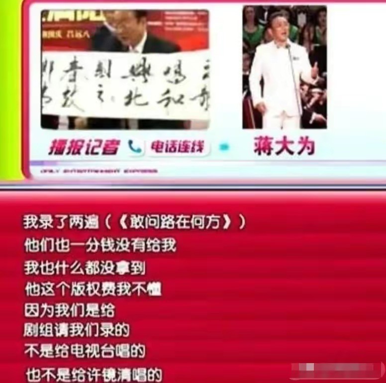 是真是假已经无从判断,但蒋大为赢了官司,却输了人品是真的。