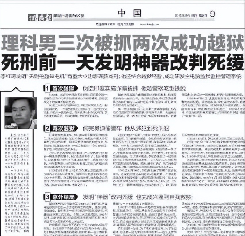 浙大高材生李洪涛,3次成功越狱,死刑前一天发明专利,改判死缓