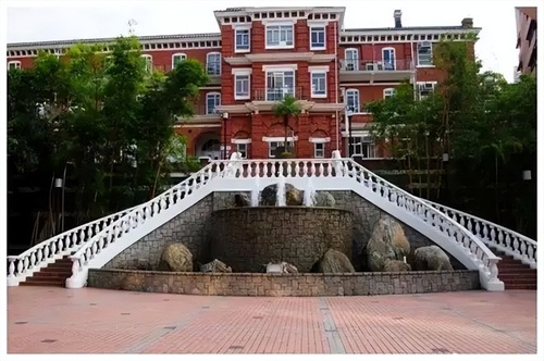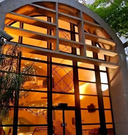 这栋楼建筑布局风格十分的诡异,首先,大楼门口的泉坛叫“月明泉”,水池分两层,前面是水池坛,后面是矩形楼梯,两侧台阶扶手是白色,中心的水池喷出的三柱喷泉,就像个祭祀的香炉。