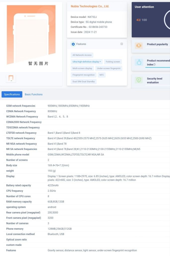 Nubia Flip 2(型号NX732J)最近通过了工业和信息化部(MIIT)的网络接入认证,这意味着它的发布即将来临。该机型支持先进的5G增强移动宽带(eMBB)和跨网漫游,确保用户能够享受无缝的连接体验。