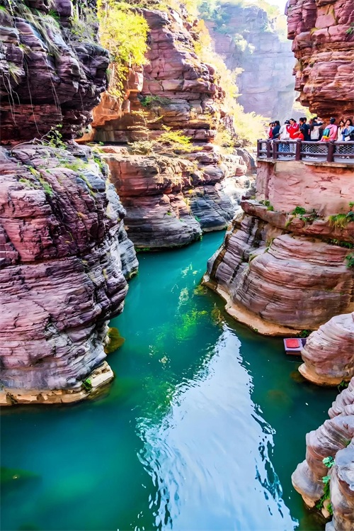 红石峡:云台山的核心景区,以赤红色的岩壁和碧绿的溪水闻名,是北方少有的赤霞地貌峡谷景观。