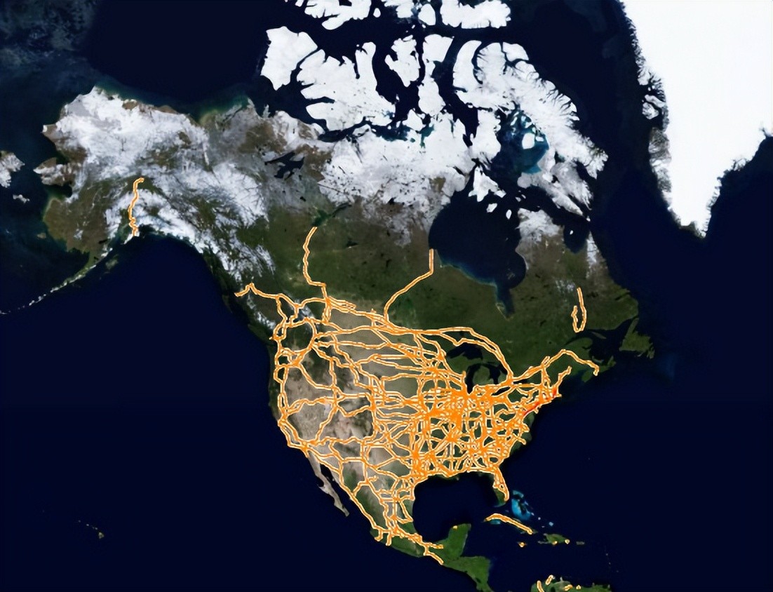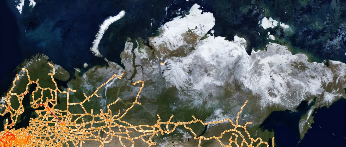 还有人口密度:俄罗斯和加拿大的铁路网集中在人口密度较大的地区,大片的国土仅有极少数铁路线路贯连。