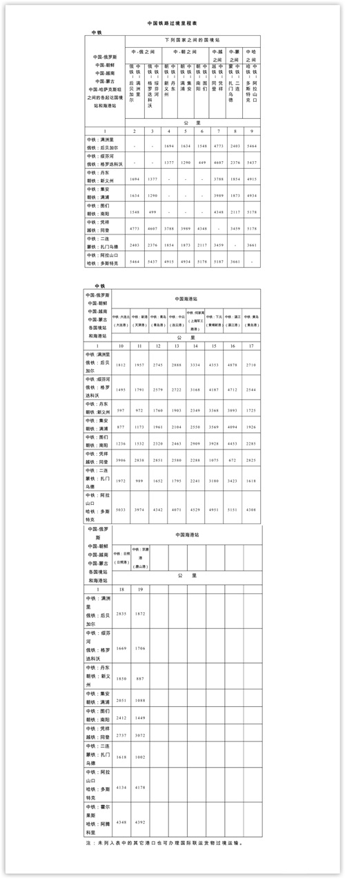 中铁:满洲里 俄铁:后贝加尔、中铁:绥芬河 俄铁:格罗迭科沃、
