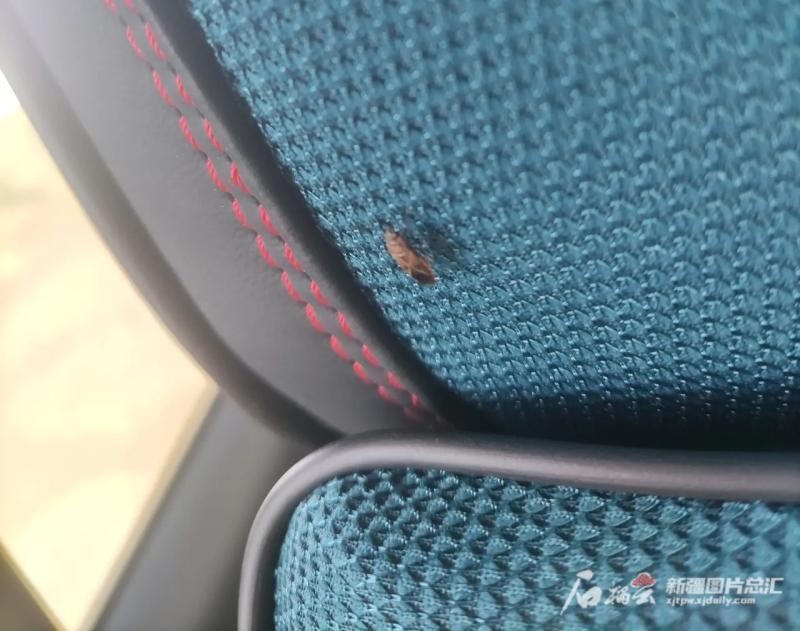 6月14日,在乌鲁木齐市天山区东大梁东街一辆轿车内,爬着最近乌鲁木齐常见的这种虫子。石榴云/新疆日报记者 胡大敏摄