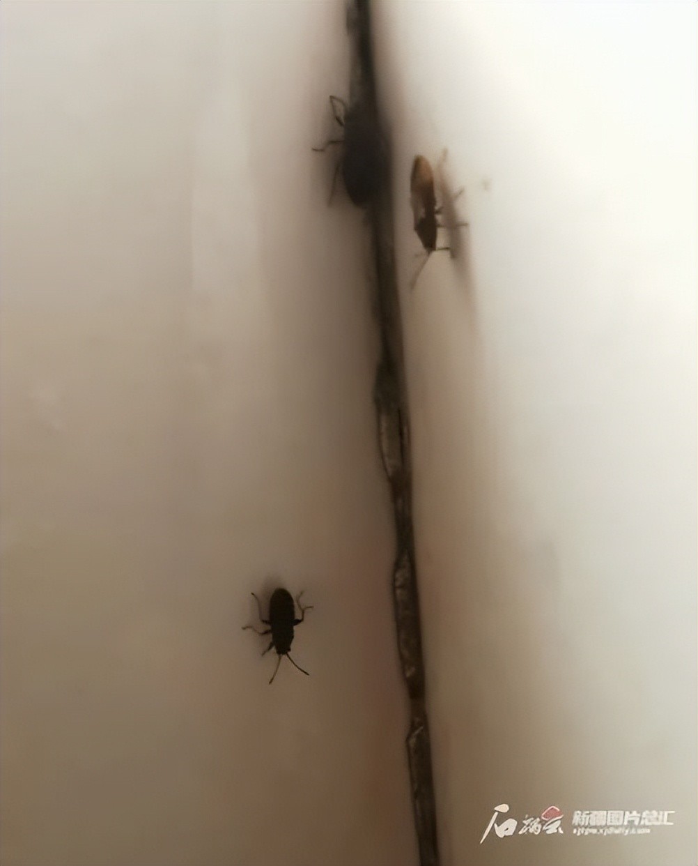 6月13日,在乌鲁木齐市天山区碱泉三街专汽小区居民房子里,随处都是虫子。网友“八百标兵”供图