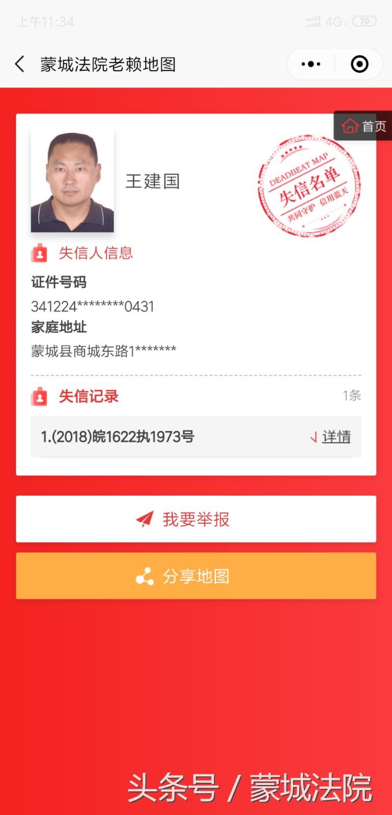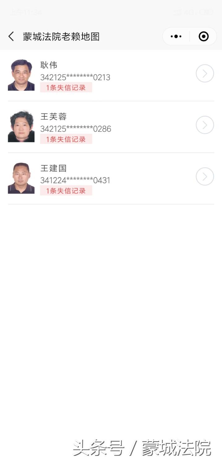 其中的每一名老赖都是被曝光的,可以查看老赖信息。