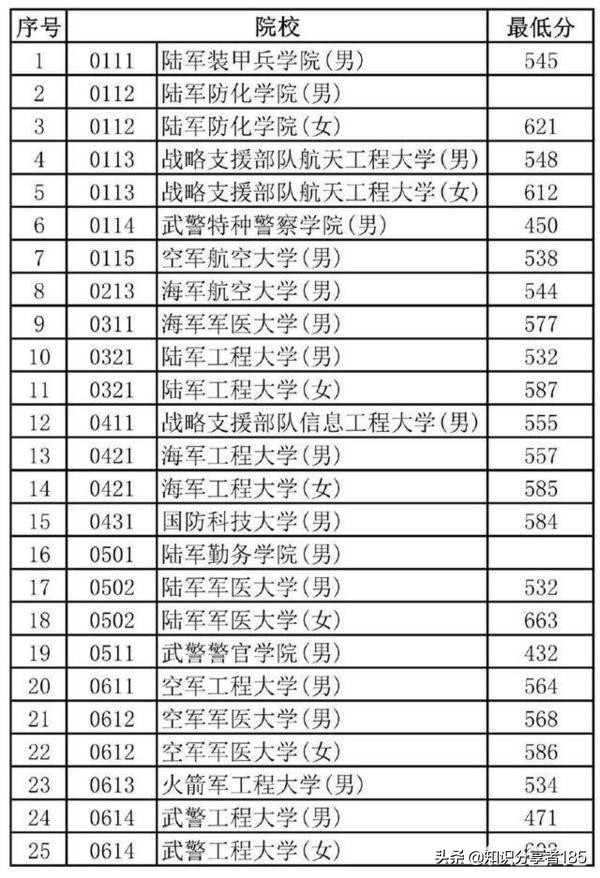 其实分数也很难代表什么。因为军校录取的名额原本就很少,录取率比985大学的还要低。很多考生去争几个名额,自然把分数推上去了。而且并不是所有的军校都会在一个省份都有招生计划,也就没有办法统计录取分数线的排名。