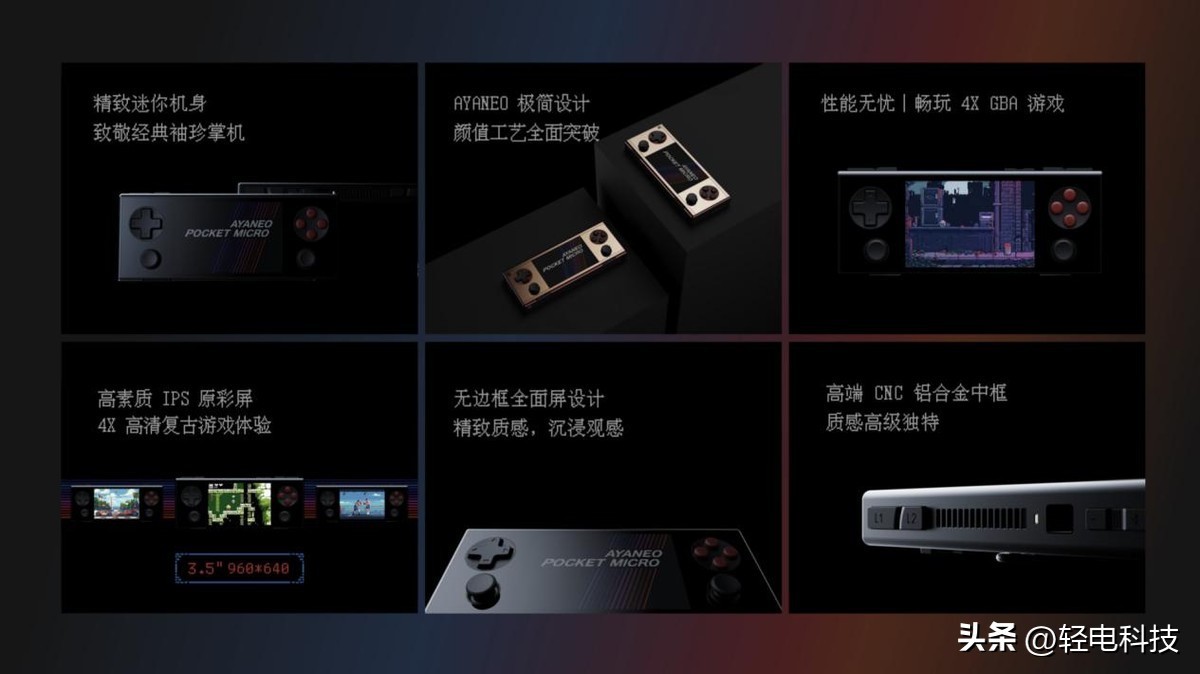 此外,AYANEO Pocket MIRCO 还配备 AYANEO FLIP DS 下屏的同款高素质小屏,不仅色彩表现领先,其 960x640 的屏幕分辨率正好为 GBA 屏幕分辨率 240×160 的 4 倍,像素点对点带来满屏无拉伸的精细游戏画面。