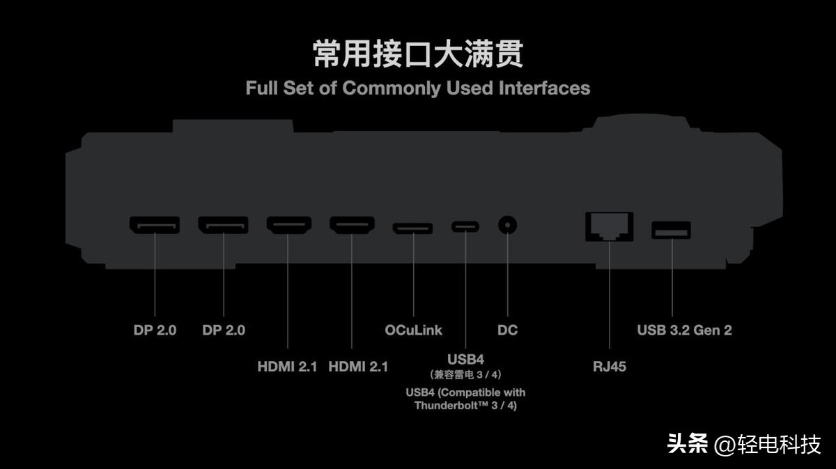 AYANEO AG01 将是市面上接口最多最全能的显卡拓展坞,DP 2.0 / HDMI 2.1 / OCuLink / USB4 等高速接口一应俱全,并且还支持免工具拆解扩展 M.2 2280 SSD,扩展性拉满。