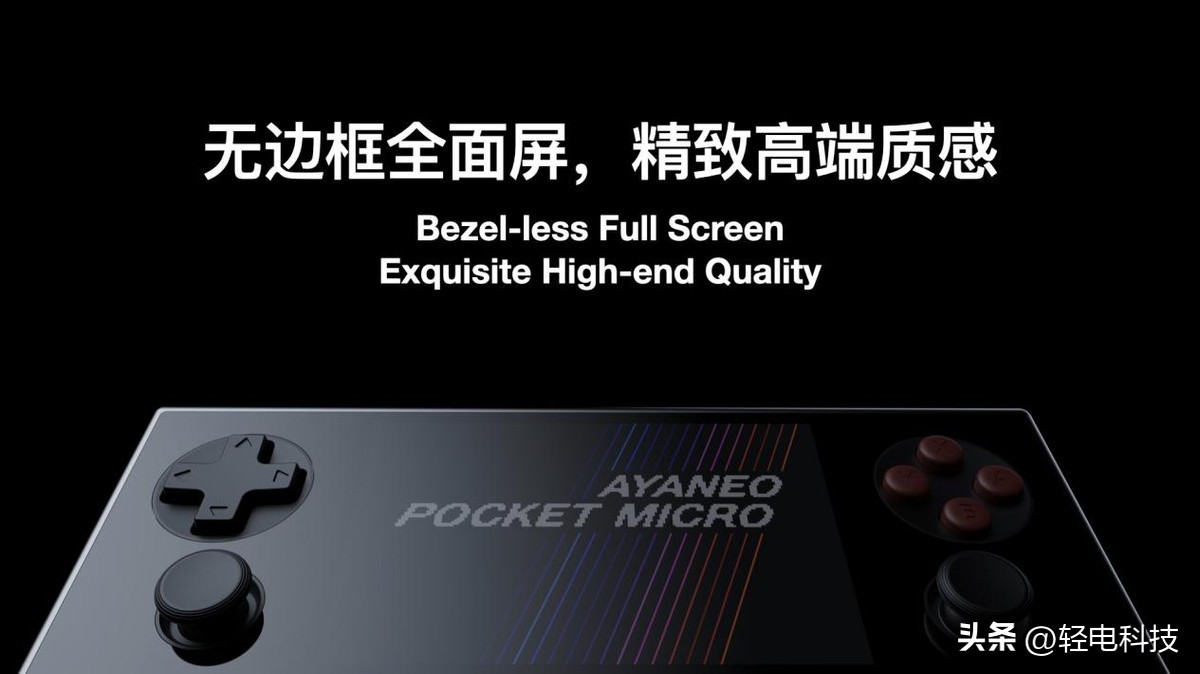 AYANEO Pocket MIRCO 引入 AYANEO 2S 和 Pocket S 同款的精致高端无边框全面屏,让玩家享受横版复古掌机里独一档的极致屏占比和沉浸游戏画面。