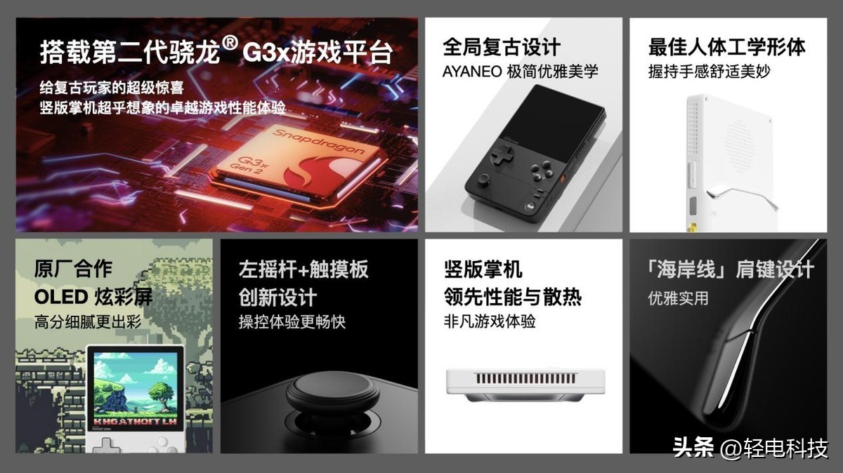 同时,AYANEO Pocket DMG 将作为首款搭载第二代骁龙 G3x 游戏平台的竖版掌机,配备强大主动散热体系,释放竖版掌机前所未见的强悍性能,轻松征服复古游戏和高性能手游,带来其他竖版掌机难以比拟的非凡游戏体验。