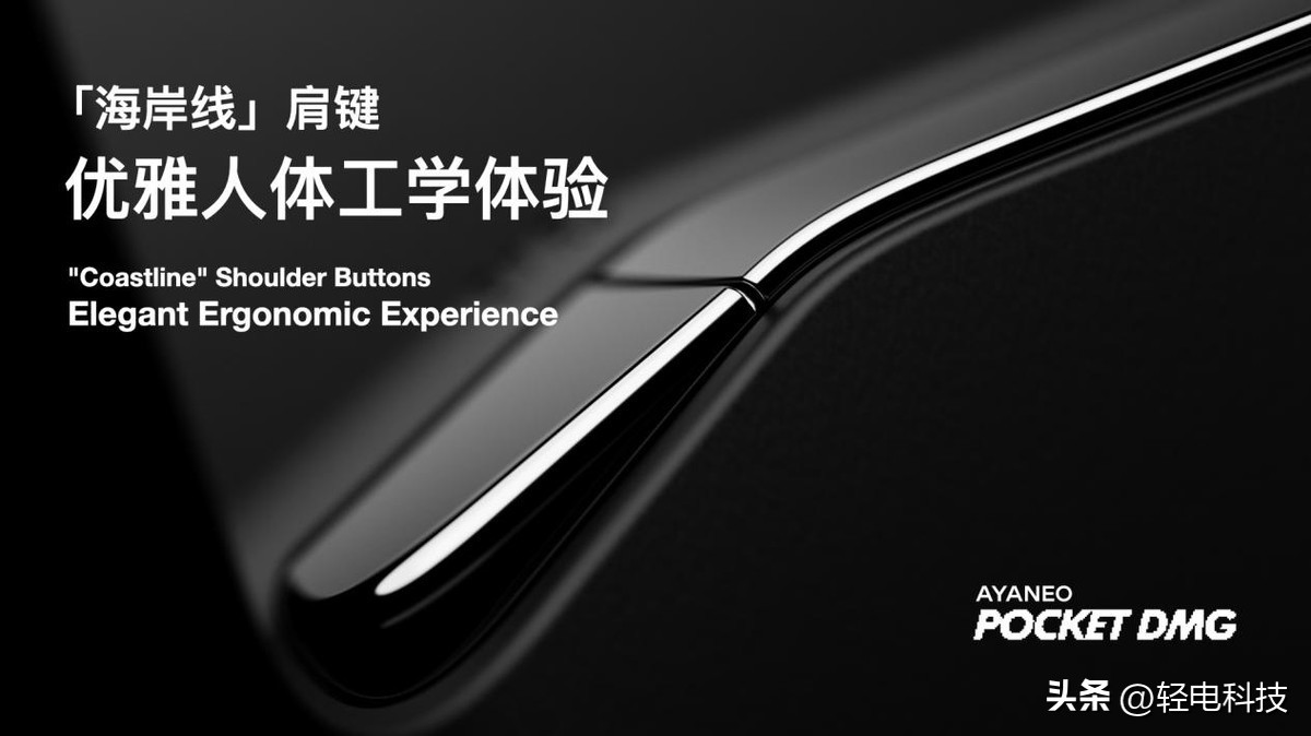 AYANEO Pocket DMG 的按键体验同样出色,肩键首创「海岸线」设计,优美曲线融合人体工学,带来更完善的肩键体验;按键手感延续 AYANEO 掌机优良传统,代表复古元素的滚轮键以及其他按键均位于机身中部附近,双手握持能够轻松按到所需按键。
