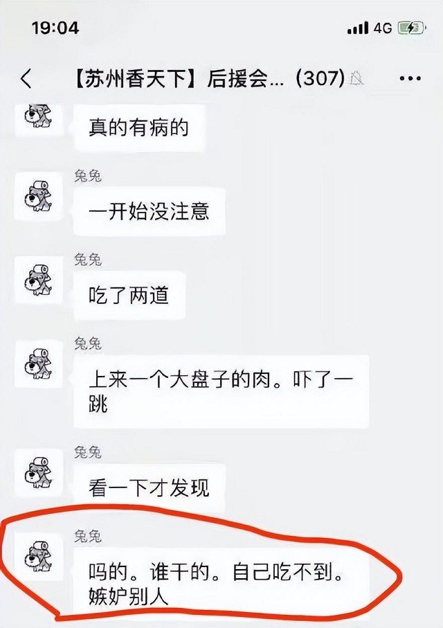 气急的吴女士不由得在群里破口大骂,警告那位“好心人”不要在进行这么无聊的恶作剧了。把之后没有上的菜全部给退掉。