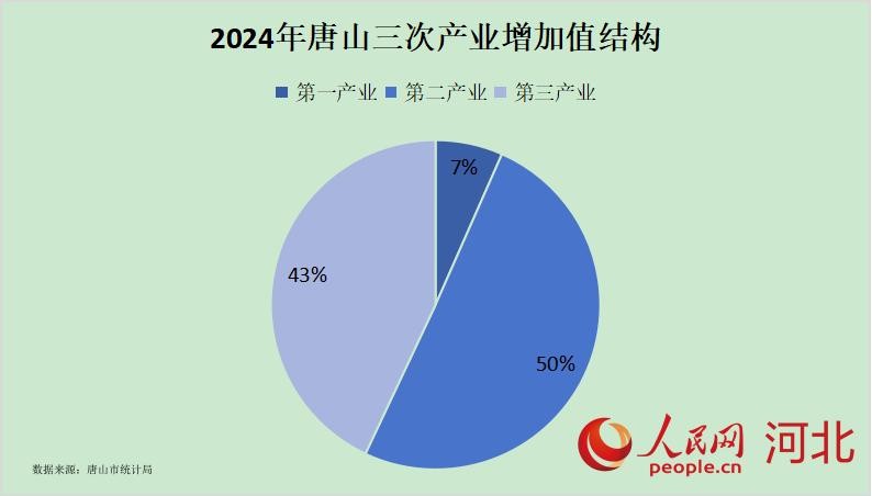 2024年唐山三次产业增加值结构图。人民网 朱延生制图