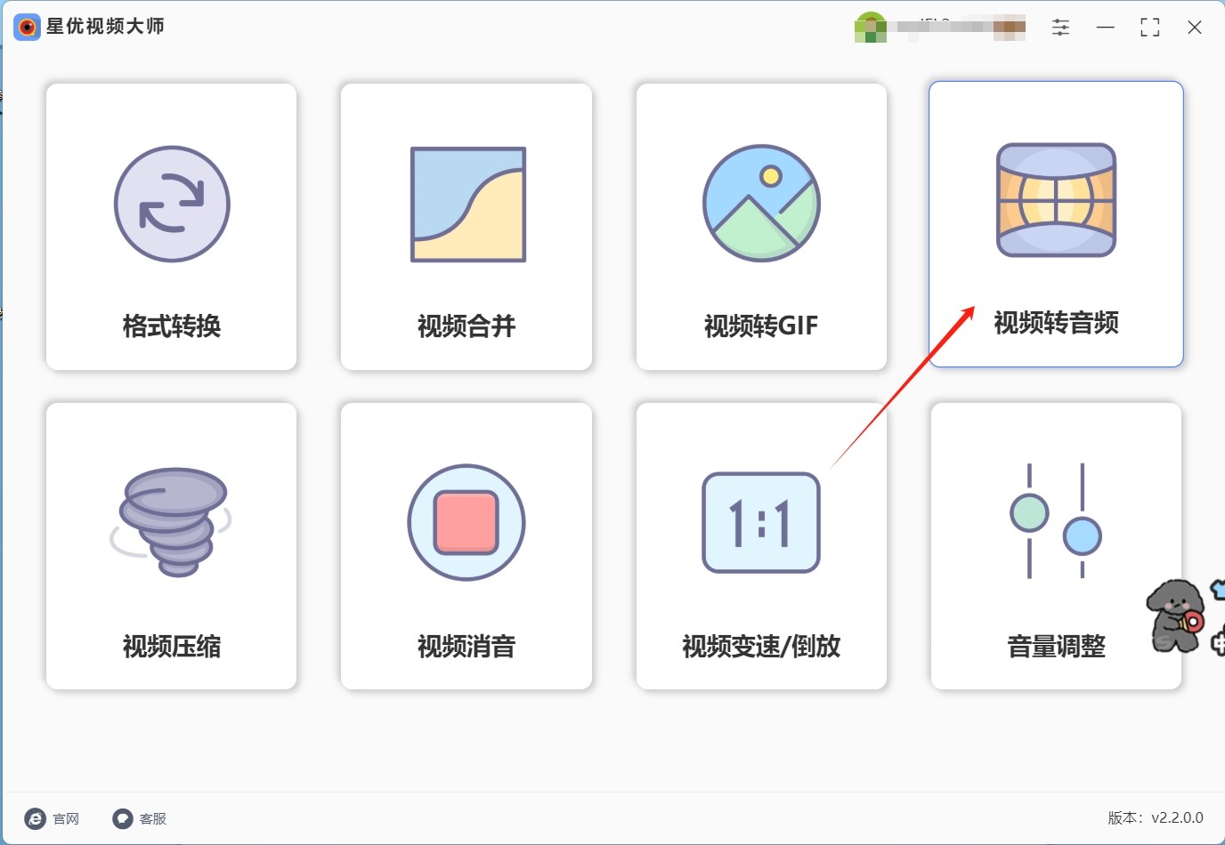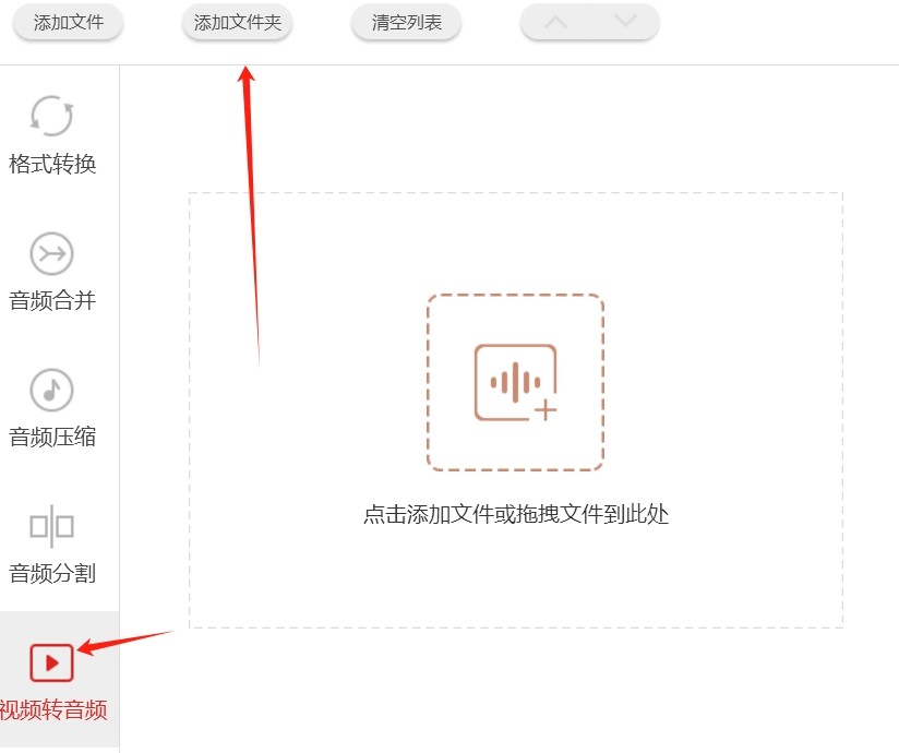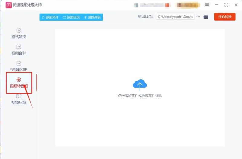 打开软件,您将看到一个简洁的界面,选择“视频转音频”功能,这是专为将视频文件转换成音频格式设计的选项。