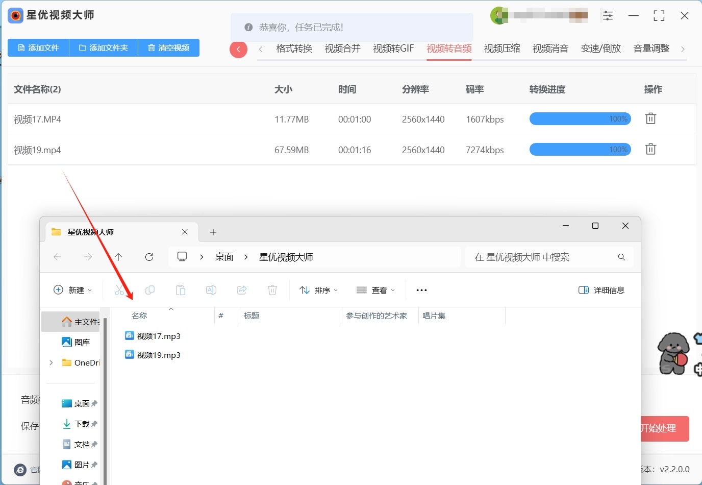 转换完成后,软件会自动打开包含转换后文件的文件夹。你可以在此文件夹中查看所有已经转换成MP3格式的文件,确认转换是否顺利。如果需要,你还可以随时点击某个文件进行试听,检查音质效果。根据测试,星优音频助手不仅转换速度非常快,而且音质保持完好,完全没有压缩损失,转换效果相当出色。