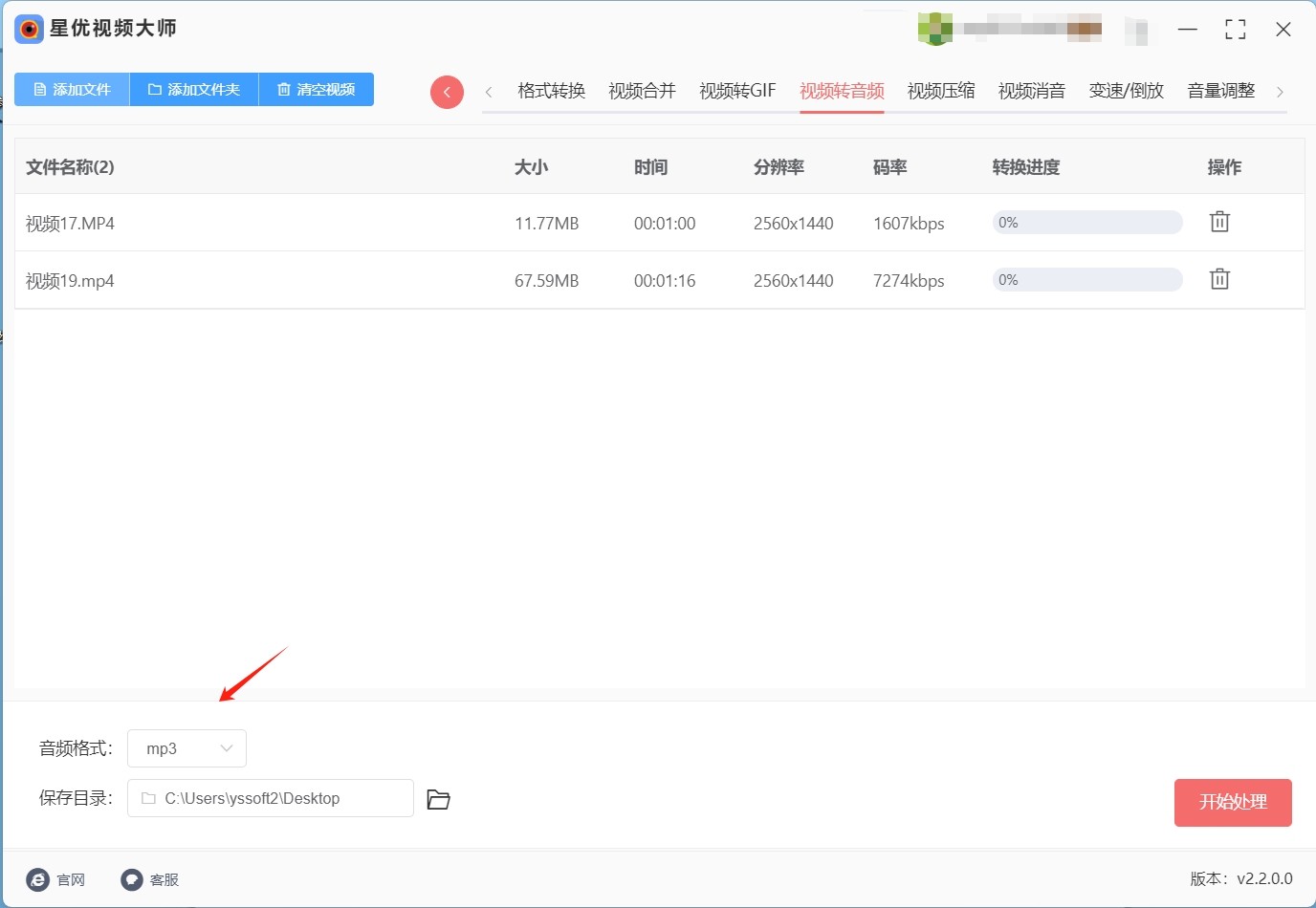 视频转换成音频的方法四:使用“优速视频处理大师”软件